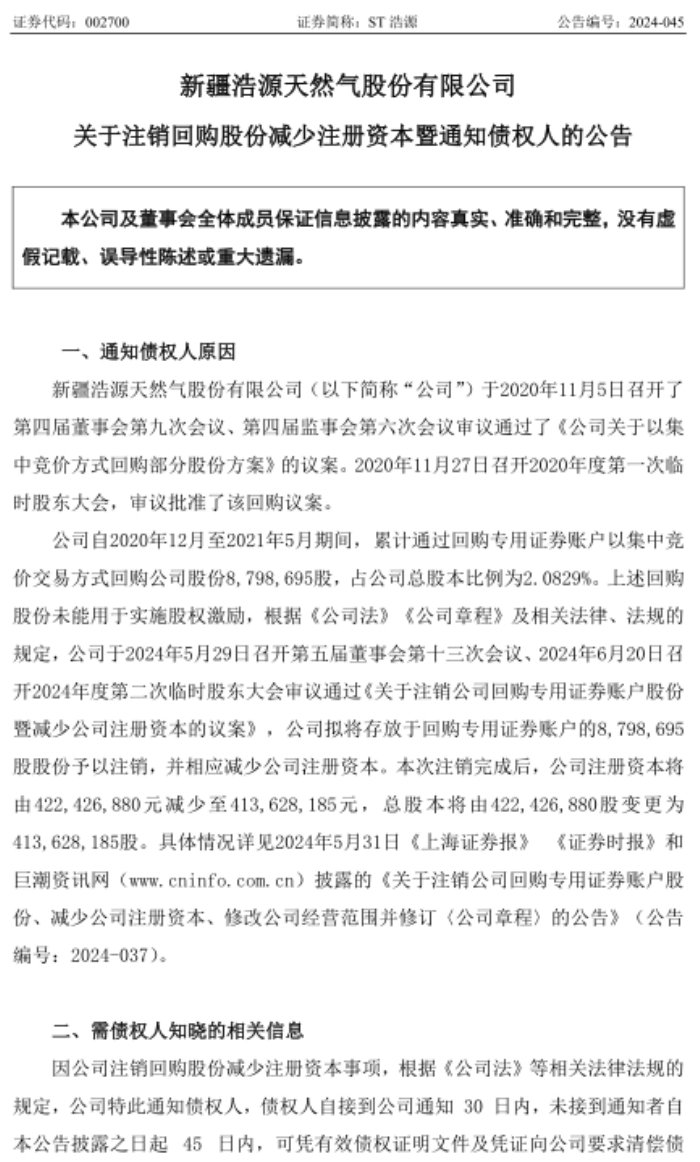 证券代码:002700证券简称:ST浩源 公告编号:2024-044
