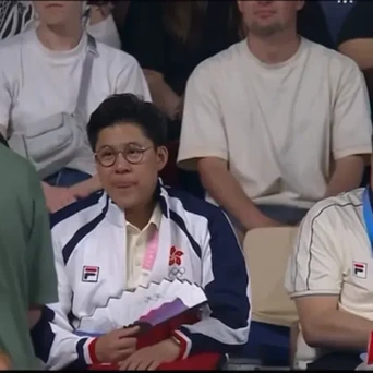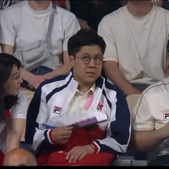 郭晶晶和霍启刚俩人正跟旁边人说话呢,突然霍启刚眼睛一斜,看到有人过来要合影!搞得霍启刚赶紧这里整理一下仪表,抿了抿嘴巴!配合拍照!一套动作看起来有点憨憨的!还是得郭晶晶,淡定自如!